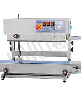 Роликовый (конвейерный) запайщик – это крупное промышленное оборудование, которое в автоматическом режиме выполняет как упаковку, так и постановку даты, нанесение этикетки и пр. Бывает вертикальным (чтобы жидкое или сыпучее содержимое не высыпалось/пролилось) и горизонтальным (упаковывает товары плашмя). Аппараты работают с крупными и тяжелыми грузами с максимальной нагрузкой на конвейер до 10 кг.
