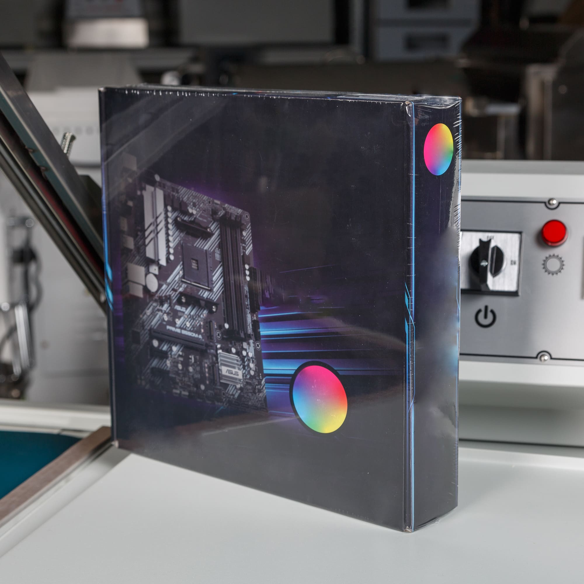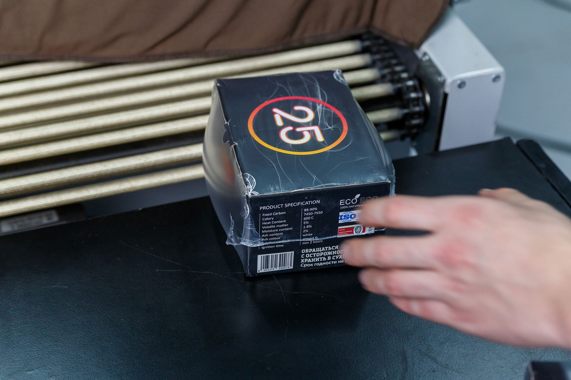 - Подача пленки: Рулон пузырчатой пленки размещается рядом на стойке или просто на столе.