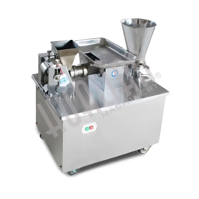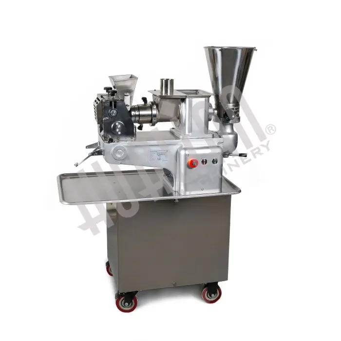 Универсальный аппарат JGL-135-6A позволяет изготавливать от 8 100 до 13 200 пельменей, мини-пельменей или вареников в час. Компания Hualian Machinery даёт гарантию его исправной службы. Модель хорошо справляется и с мясной, и с овощной начинкой. Благодаря простому алгоритму настройки оператор может регулировать размеры готовых изделий, толщину теста, скорость подачи сырья и пр.