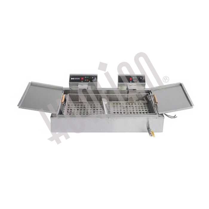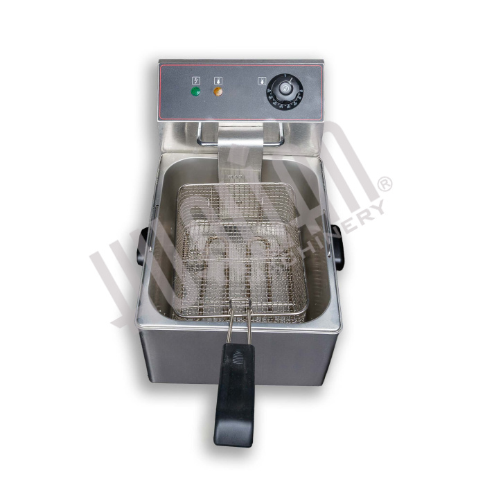 Фритюрница выполнена полностью из нержавеющей стали, включая корзину. Плотно закрывающаяся крышка и ручки из термостойкого материала обеспечивают безопасность процесса жарки. Кроме того, для повышения безопасной работы предусмотрено автоматическое отключение при понижении уровня масла до критического уровня.