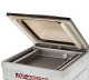 Две параллельно расположенные запаивающие планки обеспечивают прочную запайку и позволяют упаковать больше продуктов за единицу времени. Длина планки – 400 мм, ширина шва – 10 мм. Прозрачная крышка камеры позволяет осуществлять визуальный контроль. Крышка высотой до 135 мм