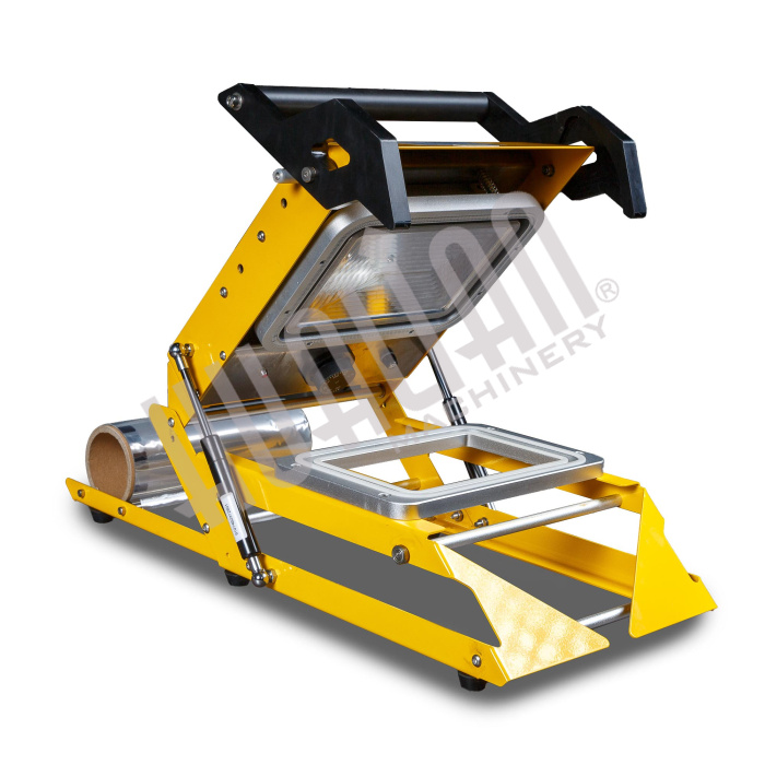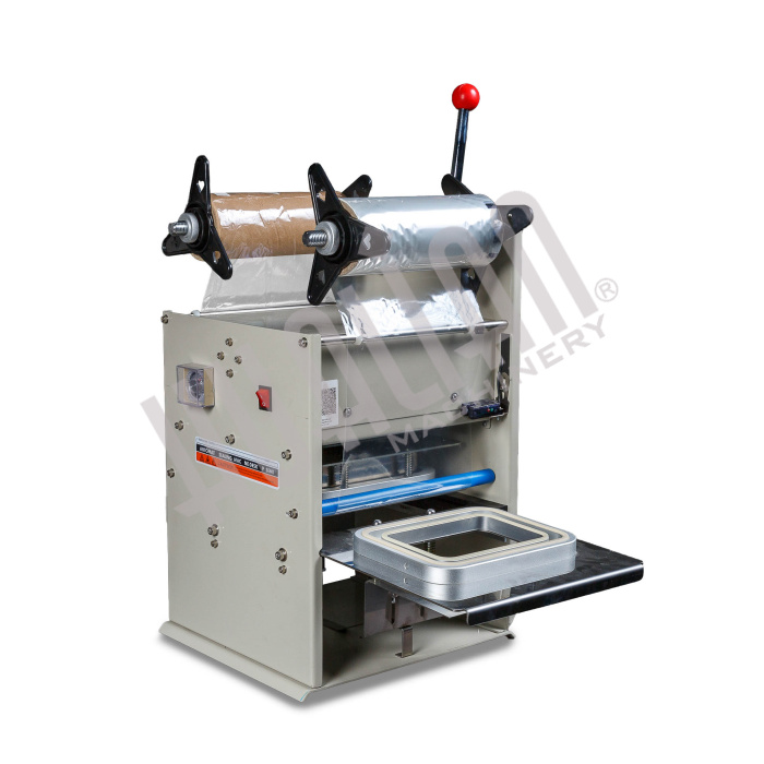 Ручные. Все работы (установка изделия и пленки, фиксация крышки, обрезка по контуру) производятся вручную. Цена запайщиков лотков довольно низкая, но они не слишком производительные. В основном механические модели используются на маленьких производствах.