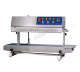 FRM-1010II – модель вертикальной запайки из серии роликовых конвейерных запайщиков с удлиненным широким приводным конвейером.
