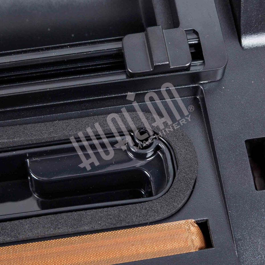 - Надёжная запайка – широкая планка (320 мм) и прочный двойной шов (2 мм) гарантируют герметичность упаковки даже для крупногабаритных продуктов.