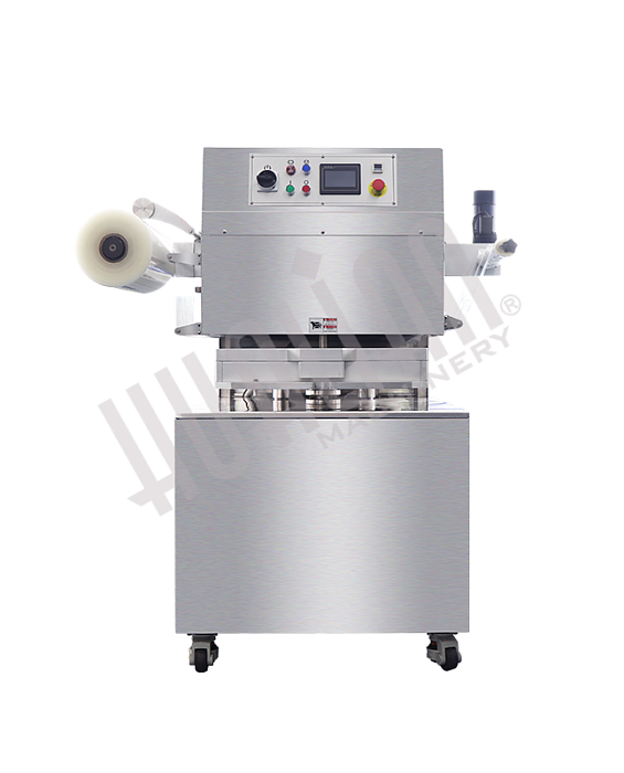 Преимущества полуавтоматического ротационного запайщика лотков с функцией газонаполнения и вакуумирования HVT-450R