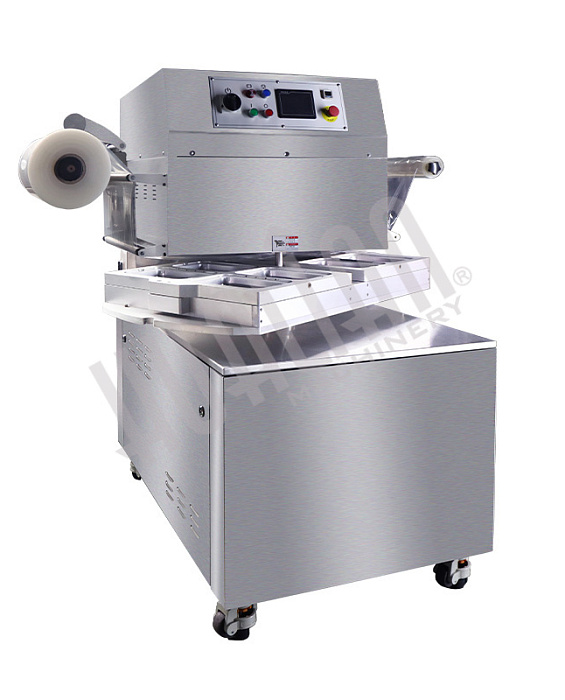 Полуавтоматический ротационный запайщик лотков HVT-450R представляет собой устройство горизонтально формата, создающее упаковку в виде лотка с пленкой. Важной особенностью является удаление воздуха в процессе упаковки и замена его на инертный газ. Это защищает продукт от влаги, пыли, запахов и снижает процент порчи, так как именно воздух является причиной размножения вредных бактерий. Таким образом, вы получаете эстетичную, прочную и надежную упаковки, подходящую для многих типов продукции.
